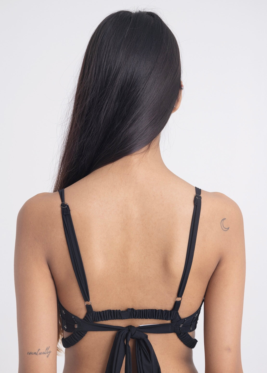 Elevate all your looks with this mesh fabric cut out bralette, featuring intricate katdana handwork.