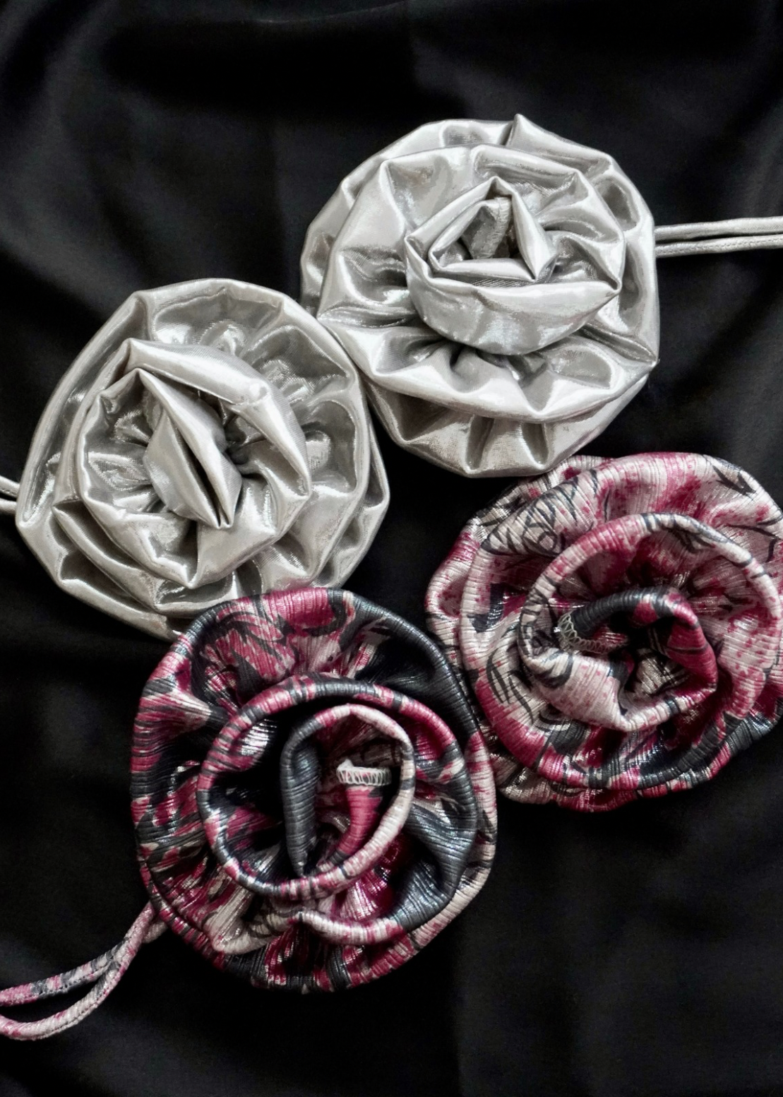 Brighten up your look with the Floral Printed Flower Tie set. With a single flower and a double flower, this set adds a playful, stylish touch to any outfit.