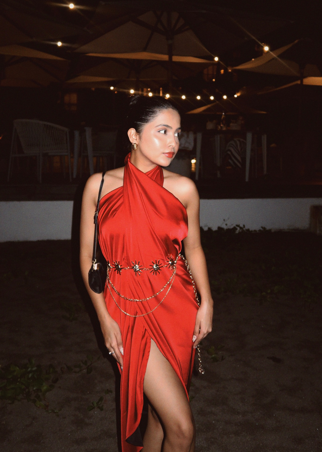 Double the glam with our Reversible Satin Skirt. Featuring bold red on one side and sleek black on the other, it’s designed to effortlessly transition from day to night.